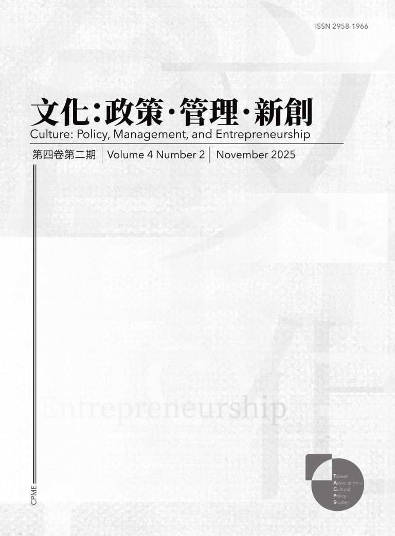 第四卷 第二期 當期出刊 國際期刊編號(紙本刊):2958-1966國際期刊編號(電子刊):2958-1974 編輯室報告編輯室報告—跨域文化治理:法規、文資、外交、科技與創意城市的深度對話劉俊裕研究論文從Adrian Vermeule法理學視角論文化基本法規範性質及其行政彈性邱子宇文化資產委外經營模式下公民參與的限制與反思:以空軍三重一村為例黃小聞臺灣是世界的臺灣:「再造歷史現場」的尺度政治與地方想像劉塗中探索臺灣文化外交旗艦機制:以《Taiwan NOW》臺日文化交流藝術計畫為例郭唐菱、吳家祺Intermediary Talent under Taiwan’s Cultural Creative Industries Policy Transformation: Roles and Development Challenges of Local Cultural Administrators in TainanCHUNG Hsiao-Ling 個案報告韓國法政策觀點:Web 3.0 時代下 Webtoon的產業應用模式洪嘉翎書評《創意都市性:再生陰影中的義大利中產階級》書評高郁婷 最新出刊 Posted by tacps.tw2025.11.16 1 min read 臺灣是世界的臺灣:「再造歷史現場」的尺度政治與地方想像 劉塗中 最新出刊 期刊文章 研究論文 研究論文V4N2 第四卷 第二期 Posted by tacps.tw2025.11.16 1 min read 文化資產委外經營模式下公民參與的限制與反思:以空軍三重一村為例 黃小聞 最新出刊 期刊文章 研究論文 研究論文V4N2 第四卷 第二期 Posted by tacps.tw2025.11.16 4 min read 《創意都市性:再生陰影中的義大利中產階級》書評 高郁婷 書評 書評V4N2 最新出刊 期刊文章 第四卷 第二期 現正徵稿 Posted by tacps.tw2025.03.21 3 min read 【地方創生的文化策略】主題特刊徵稿 CPME News 特刊徵稿 現正徵稿 Posted by tacps.tw2024.05.15 3 min read 【當代亞洲文化政策的轉型及多重悖論】主題特刊徵稿 CPME News 特刊徵稿 現正徵稿 Posted by tacps.tw2023.11.14 3 min read 【襲產製造中的「可視性」:二十一世紀文化多樣性與公共記憶之再現政治/策】主題特刊徵稿 CPME News 特刊徵稿 現正徵稿 編輯室 編審委員會 諮詢委員 智庫新訊 Posted by tacps.tw2024.11.16 1 min read 【CPME期刊】第三卷第二期出刊,敬請多加利用! CPME News 學會動態 智庫新訊 頭條 Posted by tacps.tw2024.05.23 1 min read 【CPME期刊】第三卷第一期【文化科技主題特刊】出刊,敬請多加利用! CPME News 學會動態 智庫新訊 頭條 Posted by tacps.tw2023.12.05 1 min read 【CPME期刊】第二卷第二期出刊,敬請多加利用! CPME News 學會動態 智庫新訊 頭條 更多智庫新訊 期刊文章 編輯室報告 研究論文 評論文章 個案報告 論壇紀要